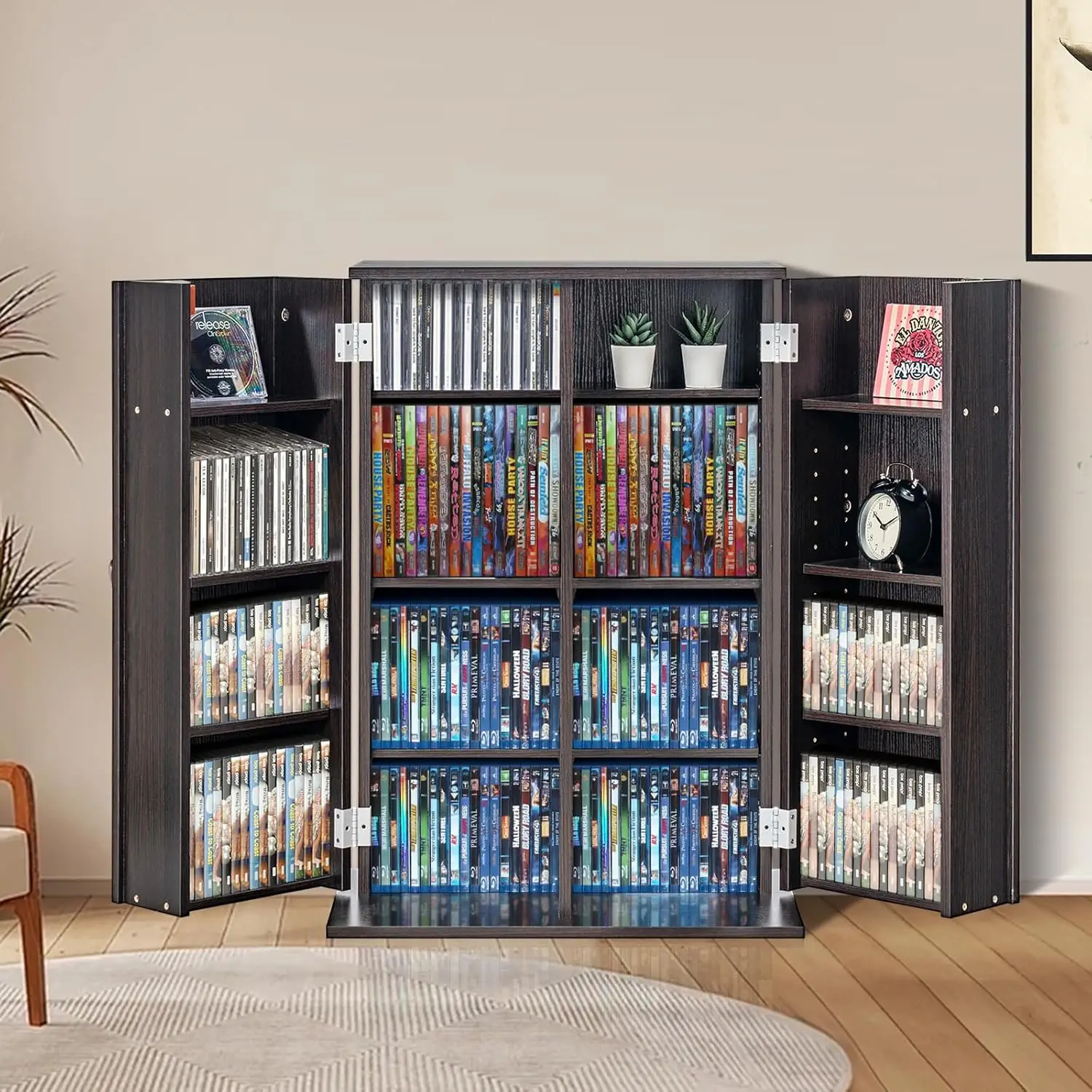Media Storage Cabinet, DVD Cabinet with Doors and Shelves, CD Storage, Adjustable DVD Shelf, Protects & Organizes Music, Movie, Video Games or Collections-Espresso