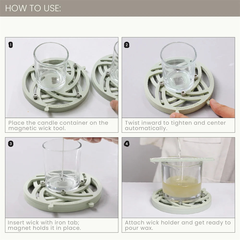 - Stronger magnetic core and wick support: 40% stronger hold for thicker bases (6–8 mm) and secure grip for wooden or cotton wicks during movement and curing.