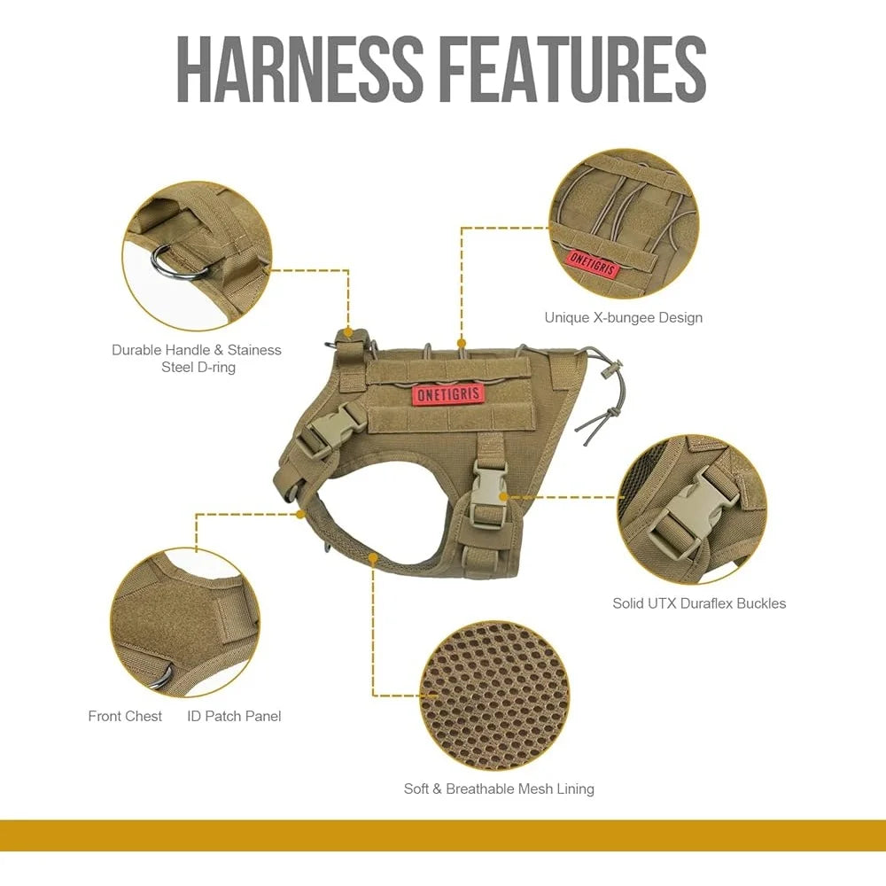 XMSJ Tactical Dog Harness Patrol Vest With Quick Release Buckles